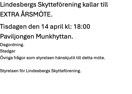 Nu är det dags för Årsmöte i Lindesbegs Skytteförening