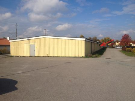 Hallen är gamla bowlinghallen. Ingång vid pilen på bilden.